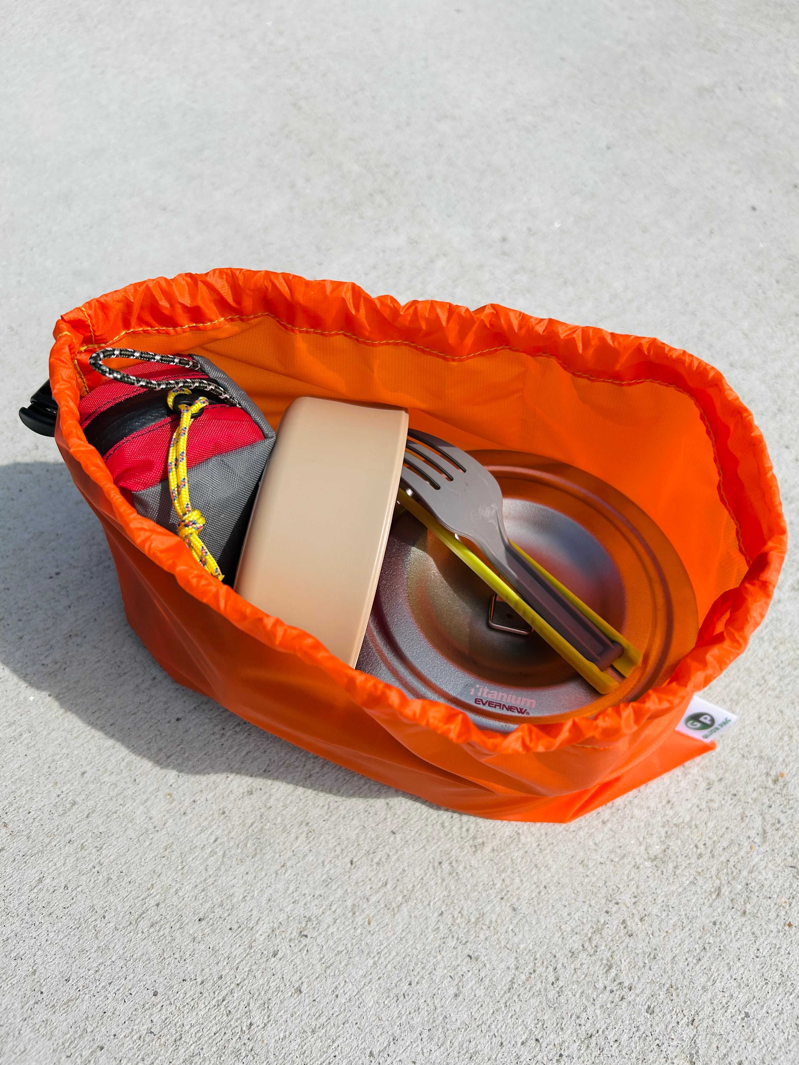 クッカーやカトラリー、バーナーの整理に便利なスタッフバッグです。