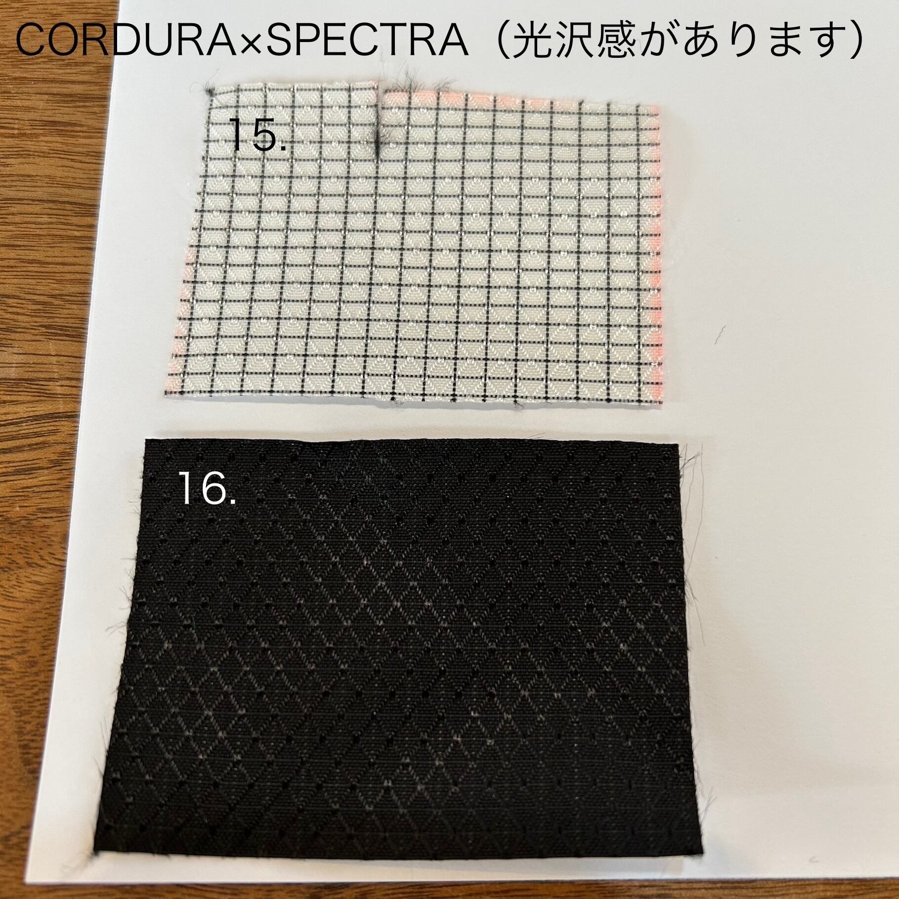 スチールの15倍の強度を持つダイニーマ糸により生成された、重量・厚みベースで最強と言われる生地。超強力超高分子量ポリエチレン(UHMwPE) 繊維とポリエステル、ポリフッ化ビニルなどのフィルムで構成されたラミネートファブリックです。