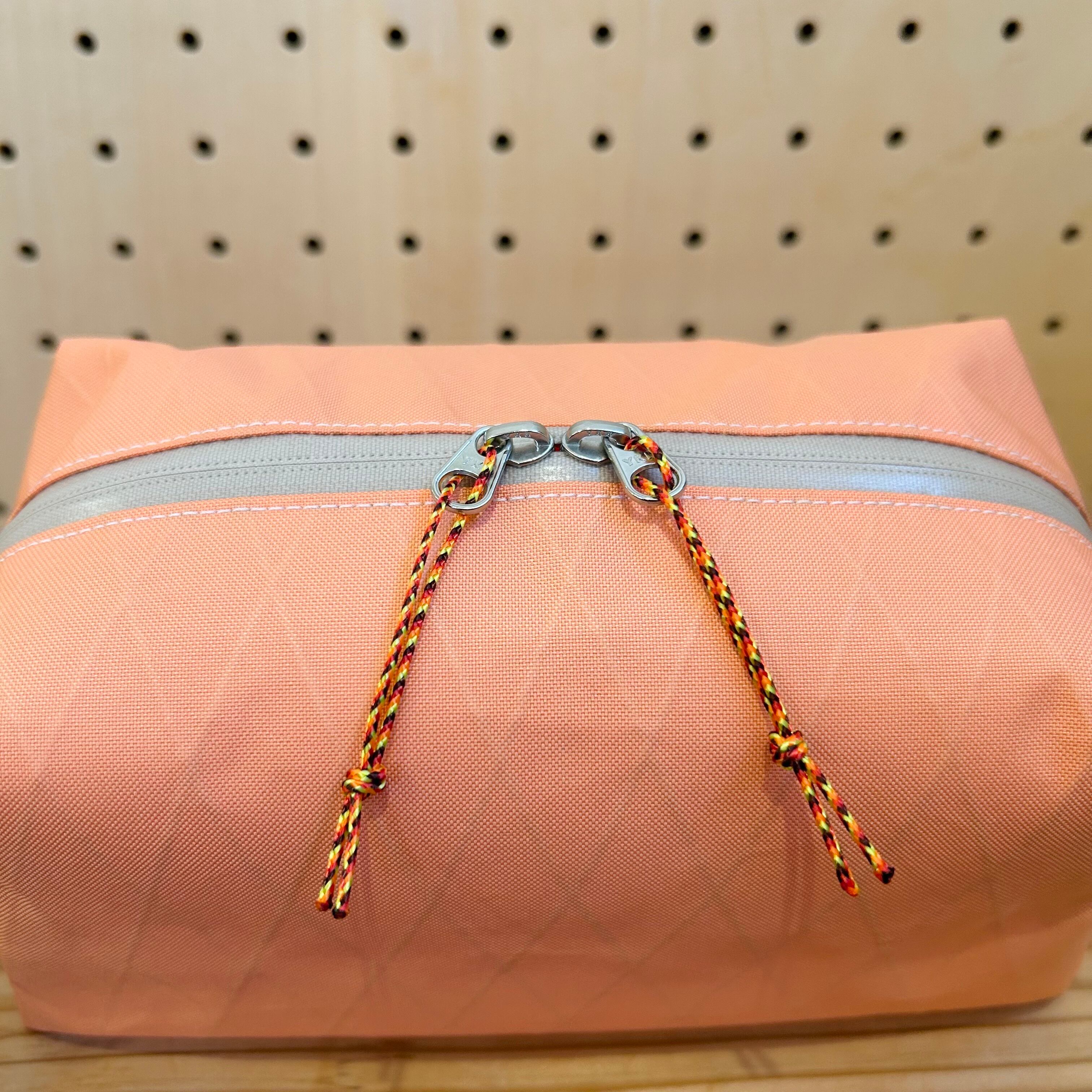 X-PACは、セイルクロス(ヨットの帆)でシェア世界一を誇る、アメリカのDIMENSION-POLYANT社が開発した、表生地+X-PLY(ファイバー)+裏生地という3種類の素材を特殊な方法で貼り合わせた3層構造からなる、強度・軽さ・防水性を兼ね備えた優れた特殊マテリアルです。