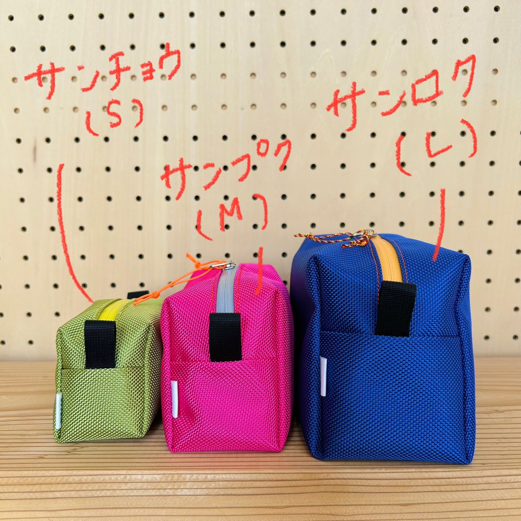 山のようにふっくらと立体的になるように設計したポーチです!3つのサイズを重ねると富士山のように楽しんで頂けます。