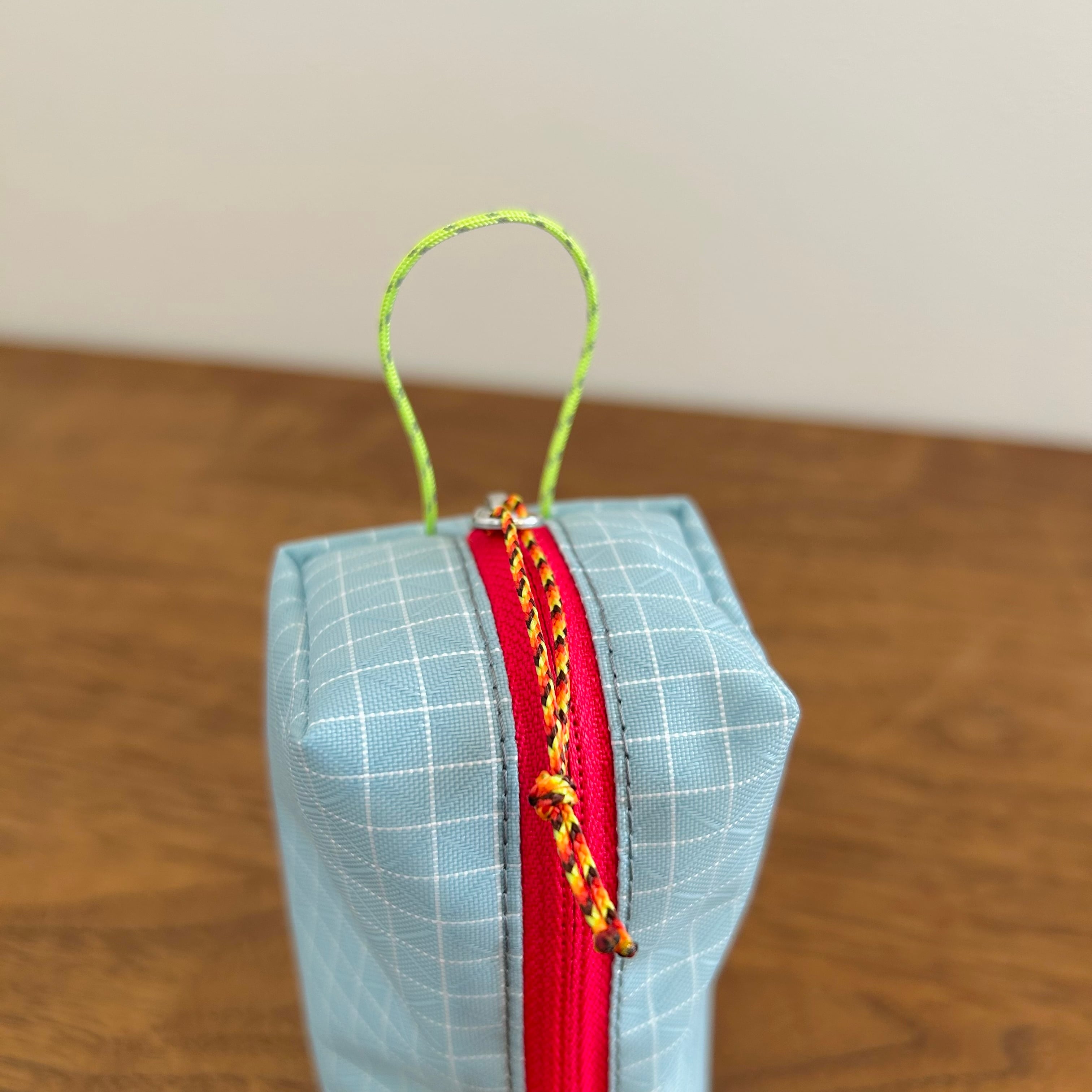 元々のナイロン巾着ケースが結構早い段階で破れてしまい、同型のを作成して数年使用しているのですが、バーナーが出し入れしやすようにファスナーをL字にしており、使い勝手が良いので、今回量産してみました。