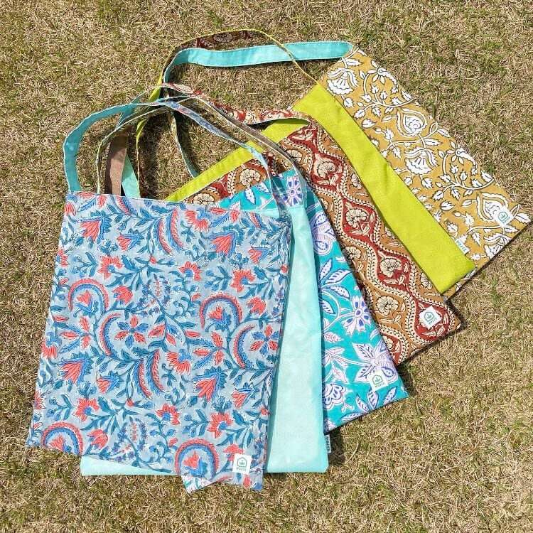 インドブロックプリントとのリバーシブルバッグです。