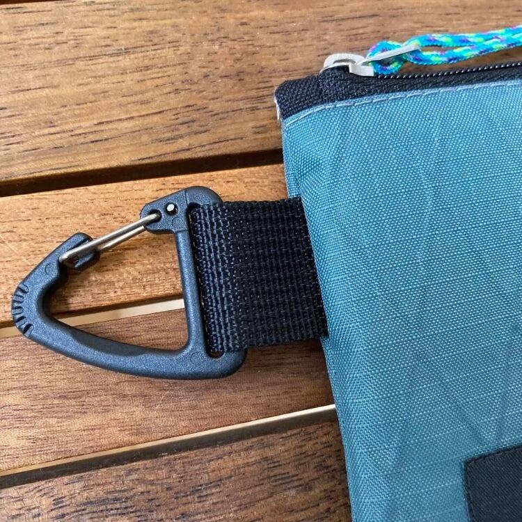 横についたパーツで、ザックにつけたり、ショルダーやサコッシュ、ベルトループに必要な時にさっと付けたり。