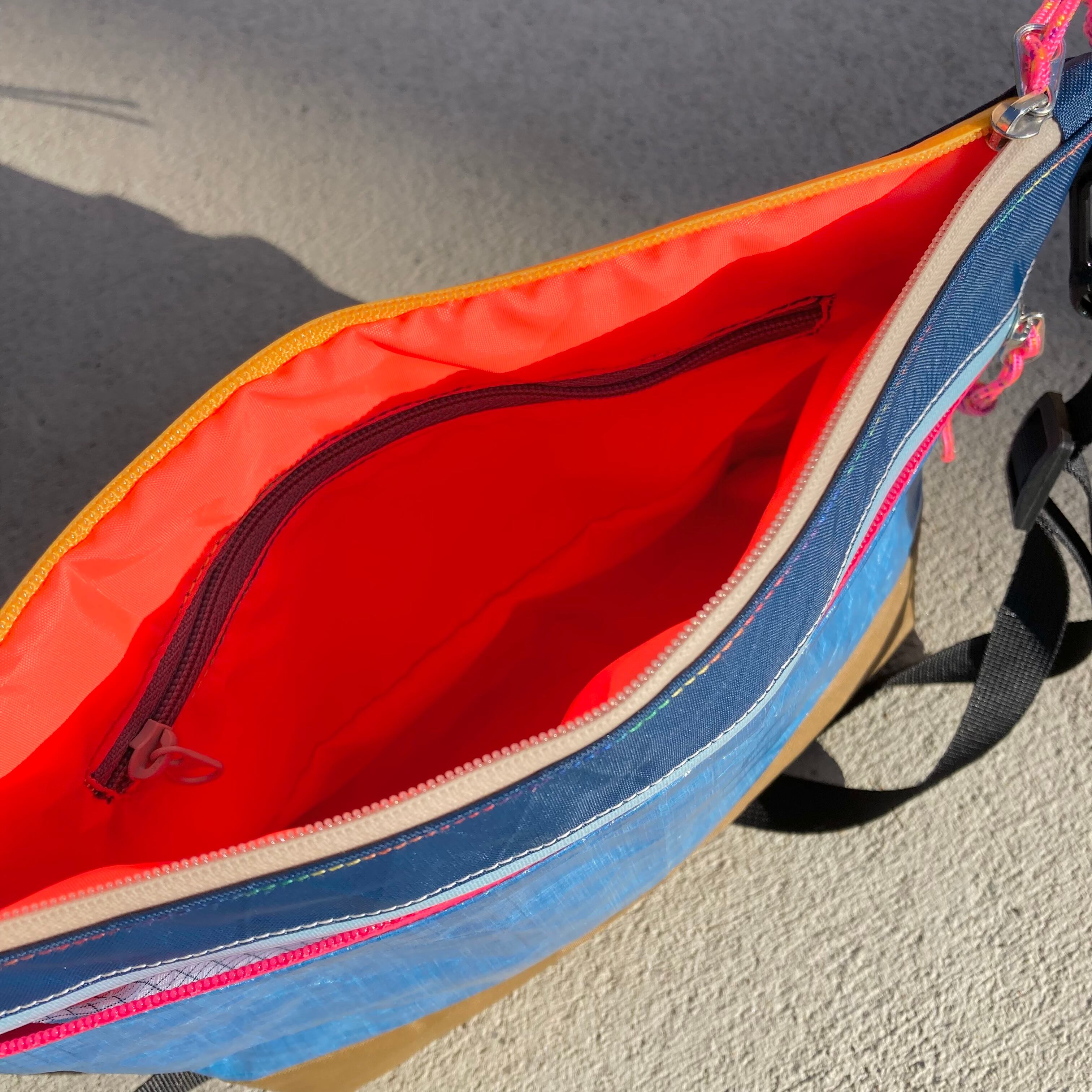 トマトポーチの形をベースに、裏地付きのサコッシュを作りました。