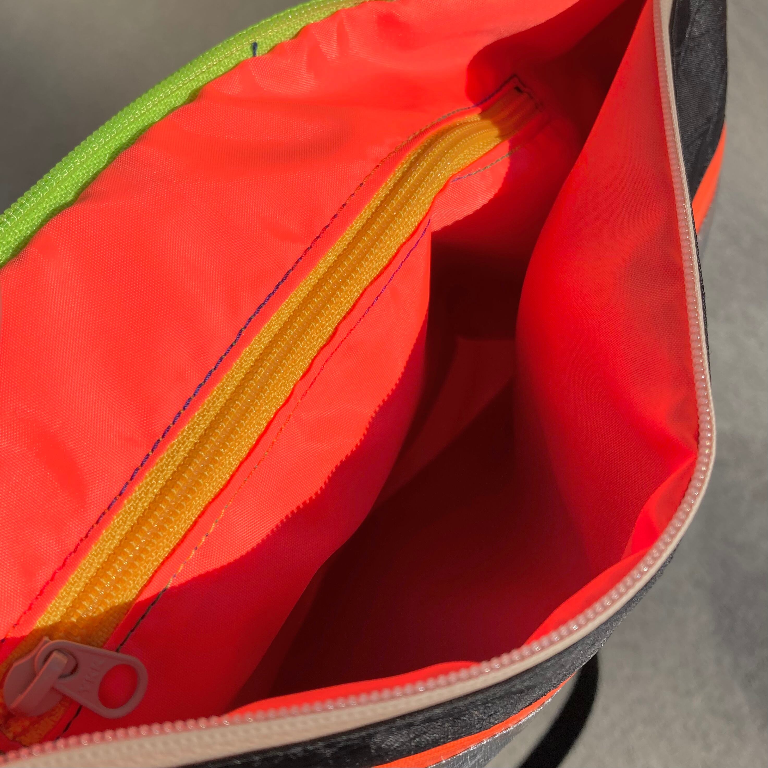 トマトポーチの形をベースに、裏地付きのサコッシュを作りました。